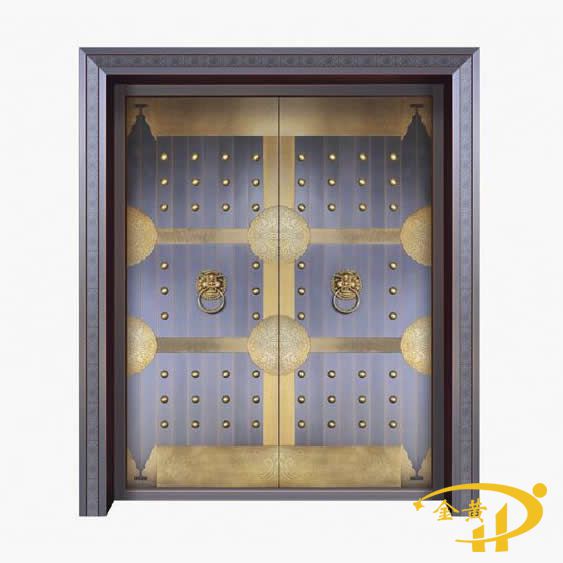 本款琉璃瓦别墅门,型号是M-9019,门面采用精工拼接工艺,原材料为洛阳纯紫铜或黄铜制作而成。 注意:罗马柱、门头高度、墙体厚和门柱宽度可根据客户实际要求量身定制。