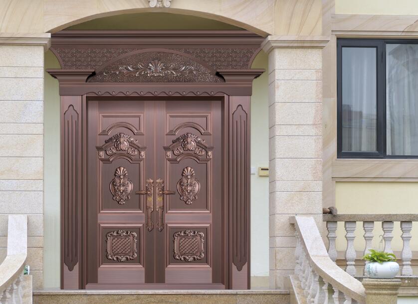本款对开铜门,型号是M-9132,门面采用精工拼接工艺,原材料为洛阳纯紫铜或黄铜制作而成。赢彩网welcome 注意:罗马柱、门头高度、墙体厚和门柱宽度可根据客户实际要求量身定制。