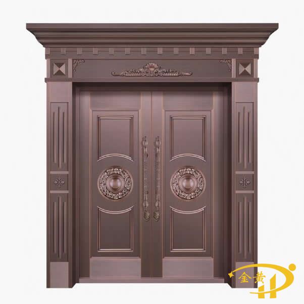 本款高端对开铜门,型号是M-9112,门面采用精工拼接工艺,原材料为洛阳纯紫铜或黄铜制作而成。 注意:罗马柱、门头高度、墙体厚和门柱宽度可根据客户实际要求量身定制。