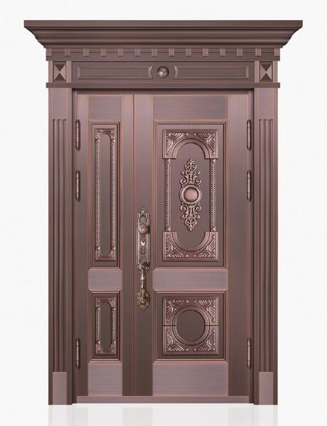 本款子母铜门,型号是M-9898,门面采用工艺,原材料为洛阳纯紫铜或黄铜制作而成。